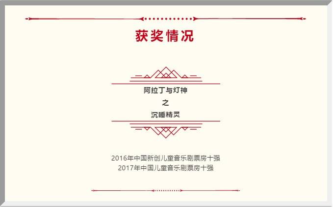 《阿拉丁与神灯之沉睡精灵》从2016年首演以来,分别获得了2016年、2017年中国儿童音乐剧票房十强。先后在上海大剧院、上海东方艺术中心、上海保利剧院演出均取得良好的口碑!
