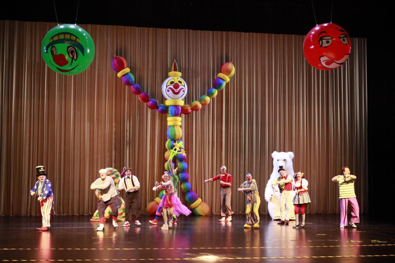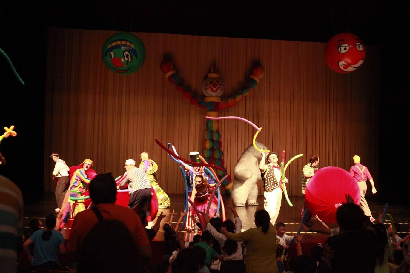 所有演员小丑们从观众席两侧随着欢快的节奏进入演出现场,与观众呼,一起随着音乐起舞,带观众进入现场狂欢节!