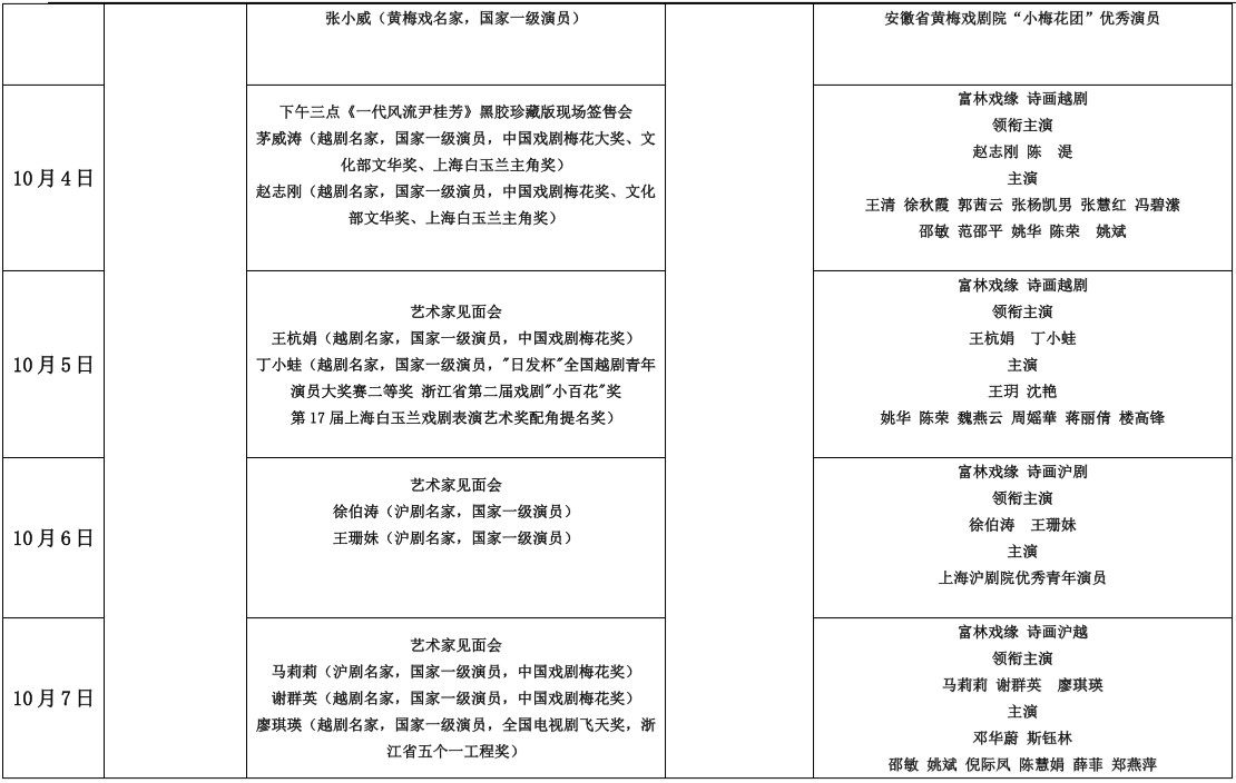 作为走过了十个年头的赵氏工坊,俨然已是一个既年轻又成熟的大师工作室了,如今以“非梧不栖”的自信姿态和广富林展开合作,在本次国庆黄金周期间,赵氏工坊就承担了八天、三十多场的文艺演出的策划、协调、落实的重任,可谓早中晚好戏连台,多剧种精彩纷呈。届时,越、沪、京、昆、黄梅戏、滑稽戏等多剧种艺术院团的知名艺术家、活跃在剧坛舞台的一线演员都将倾情加盟,国家一级演员、中国戏剧梅花奖、文华表演奖、白玉兰奖、中国金唱片奖获得者们也会集结登台