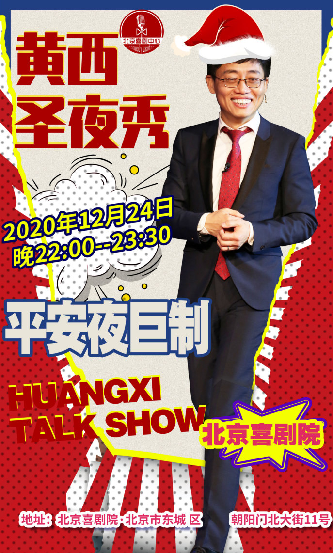 前方黄西笑将将带着原汁原味的黄氏幽默来袭,全新原创段子,自带幽默buff加持,还有神秘嘉宾现场助阵,们为你献上这场圣诞饕餮盛宴!你就在这尽情嗨翻!