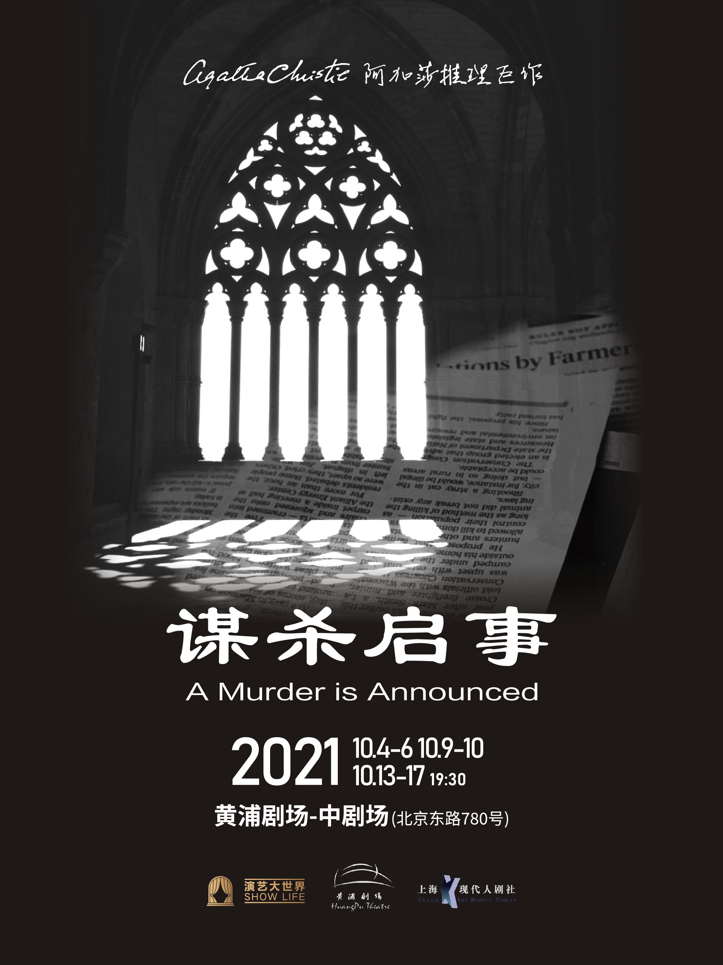 2010年,上海现代人剧社的中文版《谋杀启事》在沪首演。改编后的舞台剧,情节简化、节奏递升,不仅将14万字的温吞水小说浓缩在了1个舞台2个小时12个人物的时空当中,还近乎完美地还原了“乡间别墅派”的现场。那些推理小说中十分重要却朦胧细微的蛛丝马迹,也融入在了舞台道具和角色对白之中,和阅读小说的过程一样,让观众感受到按图索骥的兴奋和激动。