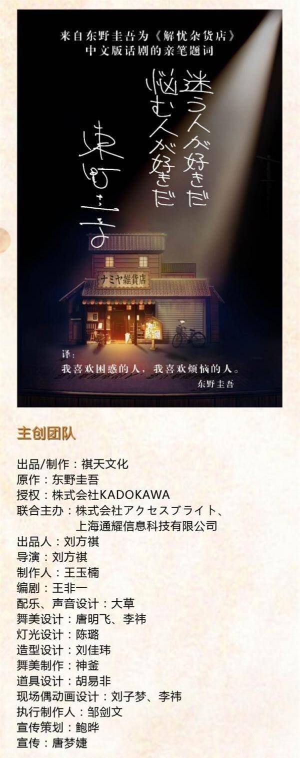 东野圭吾奇幻温情巨作 《解忧杂货店》话剧