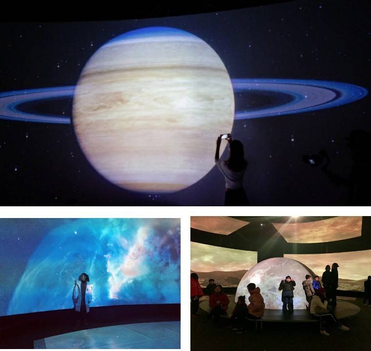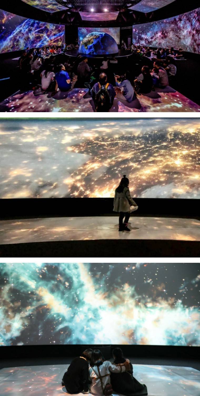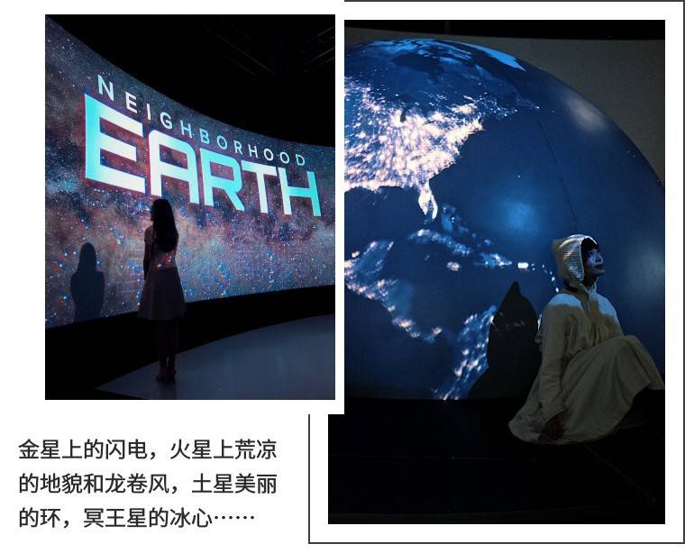 这些都能身临其境,仿佛伸手便触摸到星球边缘。头顶到脚底都是变换的画面,请尽情地拥抱星球,漫步星球。