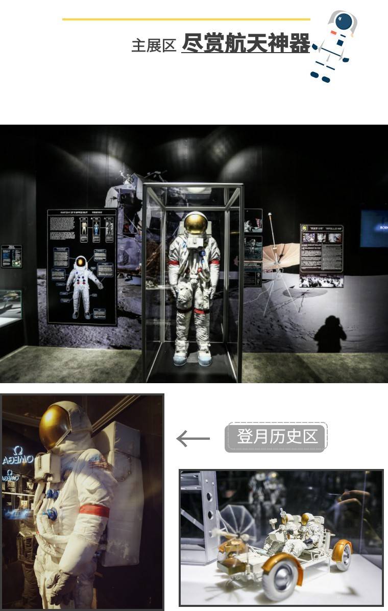 NASA A7-L宇航服、国民宝贝“玉兔号”,以及首款登月手表,“登月历史区”将观众们一下带回到了波澜壮阔的第一太空时代——二十世纪六七十年代。
