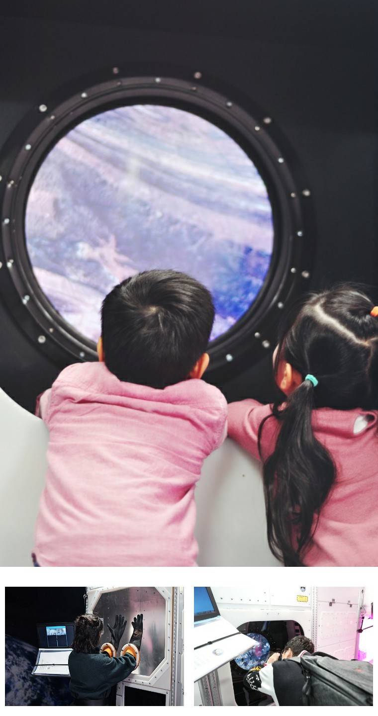发射火箭、穿上AR宇航服穿梭各个星球、亲身体验不同星球上的重力大小、测试零重力地球轨道、操控猎户座人造飞船……缤纷互动体验,让孩子们在玩乐中感受太空物理知识的魅力、一步步成长为太空达人。