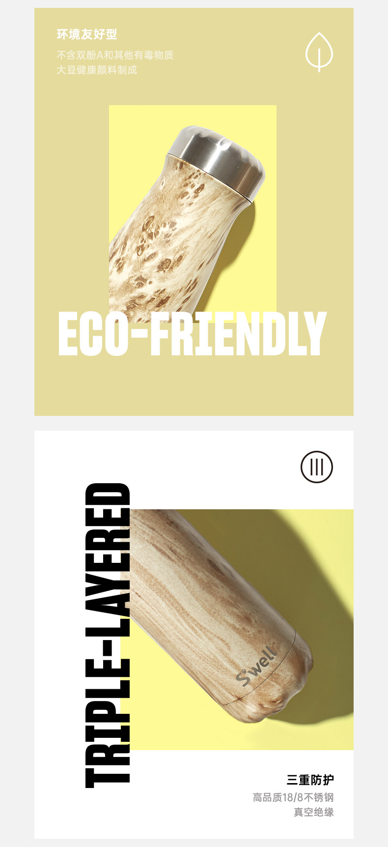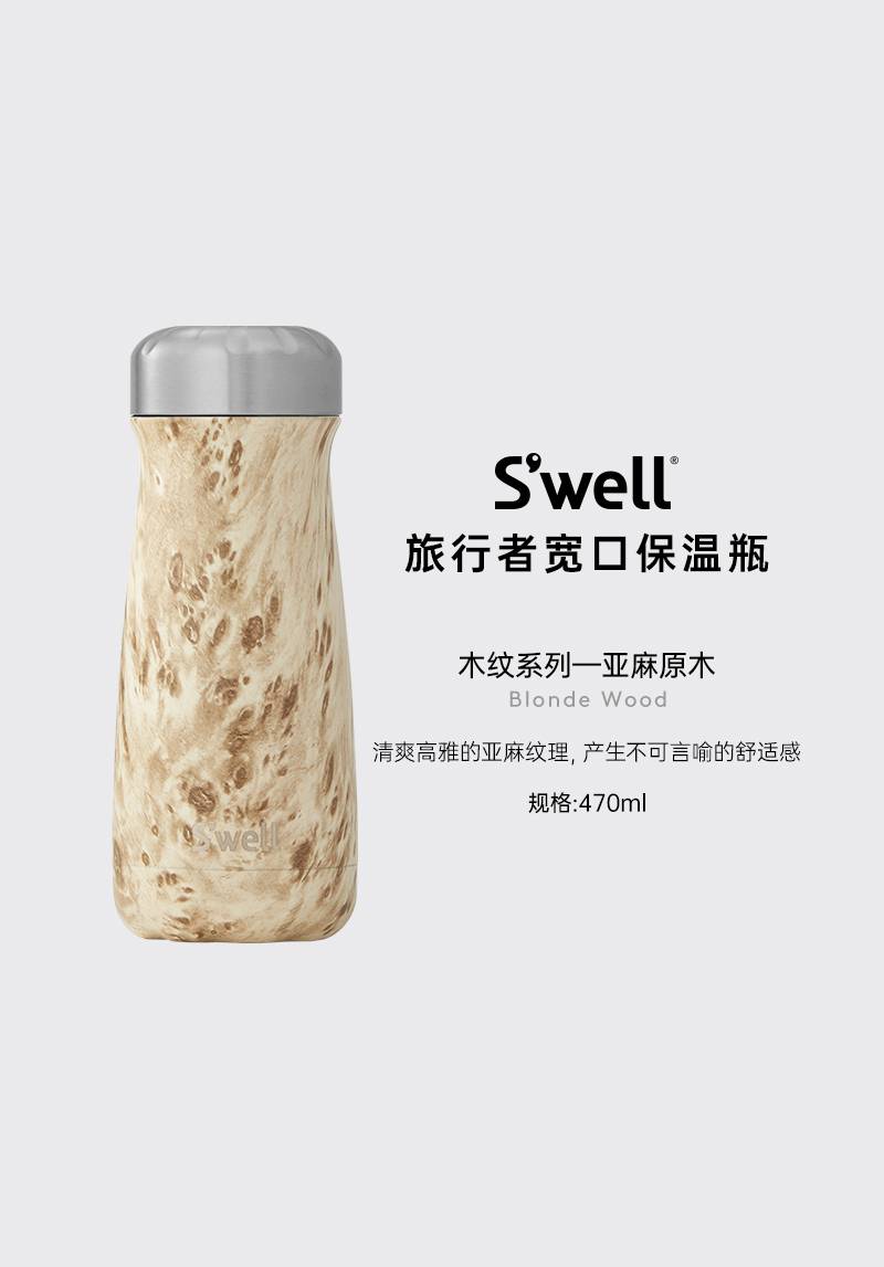 👉 品牌:S'well👉 材质:304不锈钢👉 THERMA-S'WELL保温技术👉 真空绝缘、无冷凝水👉 系列:木纹系列👉 颜色:亚麻原木👉 规格:经典保温瓶500ml/750ml;宽口瓶470ml;马克杯530ml
