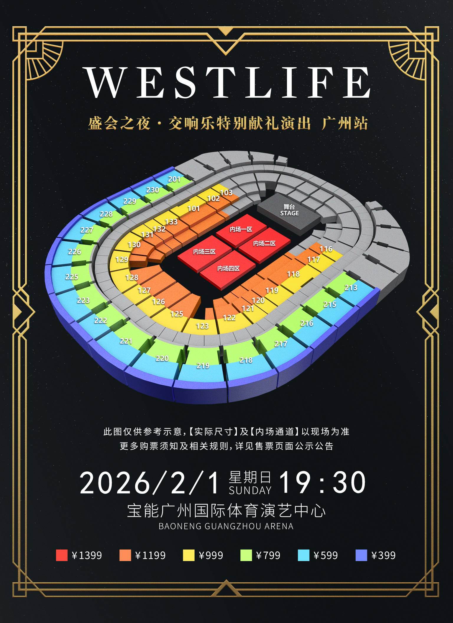 1) Regarding “Seat Distribution” and “Visually Impaired Seats”: Performers move dynamically for artistic expression and audience interaction rather than maintaining fixed positions. Due to unpredictable factors including program design, safety requirements for lighting/sound installations, and venue constraints, limited areas may experience “partially obstructed or visually impaired” views. This special notice is provided to inform ticket holders that successful purchase of tickets signifies acknowledgment and acceptance of the risk of potential “poor visibility or partial obstruction.”