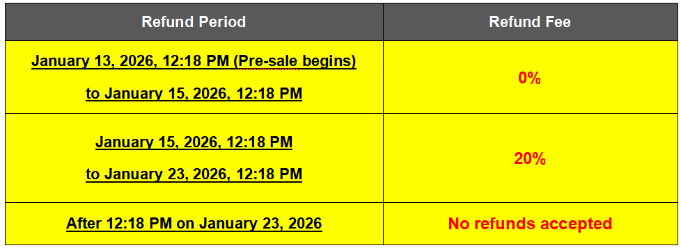 Note: Refunds may be processed during customer service hours (10:00 AM to 6:00 PM) on each ticketing platform. Refund arrival times vary by platform.