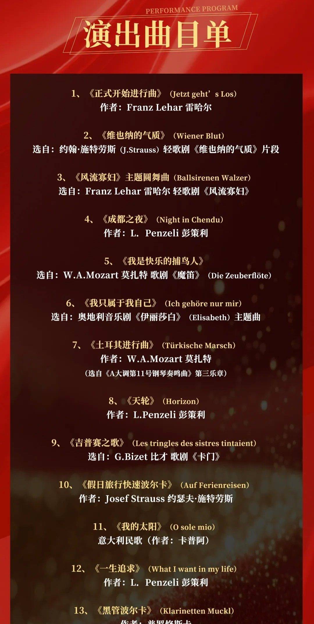 The concert repertoire of Lui Chan’s - Wiener Walzer Ensemble ranges from classical, romantic to modern pop music. Invitations to concerts from all over the world have taken the ensemble to famous music festivals in many countries of Europe, America and Asia over the past twenty years. For example: the Serenade Concerts in Linz, the Upper Austrian Stiftskozerte and the Schärding Music Festival. Participation in the Music Festival Carinthian Summer Villach, Lui Chan’s 1st Klassik in Engerwitzdorf, Memminger Master Concerts in Germany, Lucerne Music Festival Switzerland, Music at Einsiedeln Monastery in Switzerland, Concerts of the Györ Philharmonic Orchestra in Hungary, Sundaymatinees at Brucknerhaus Linz and many others.